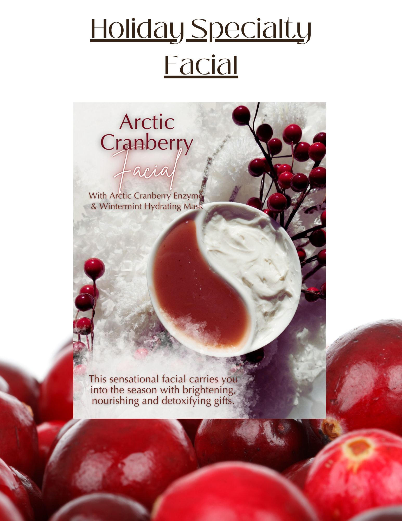 This sensational facial carries you into the season with brightening, nourishing and detoxifying gifts. Arctic Cranberry Enzyme offers 2% mandelic, 2% lactic, 2% arbutin and 2% kojic which is an exceptional combination for an extreme lightening and anti-aging facial. Arctic cranberry seed oil is rich in tocotrienols which the skin needs for protection against free radicals. The arctic cranberry