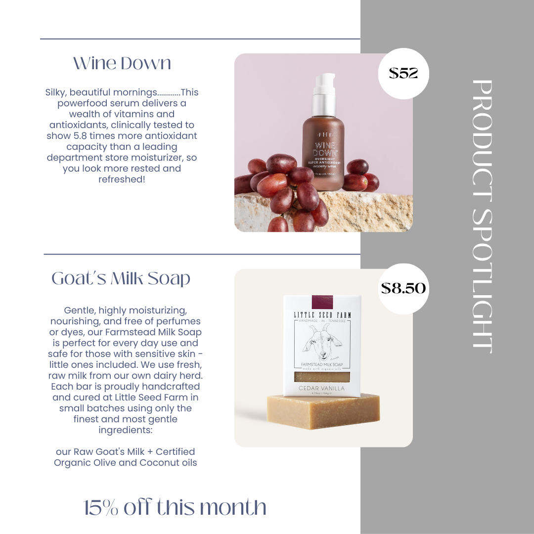 A coconut mango soak puts you in the mood as it moisturizes and soothes tired feet. Next, a fine grain pineapple-coconut sugar and shea butter scrub whips you into smoothness. You’ll be ready for a night under the stars after a light sweet orange cream body milk lotion application that seals in the softness.